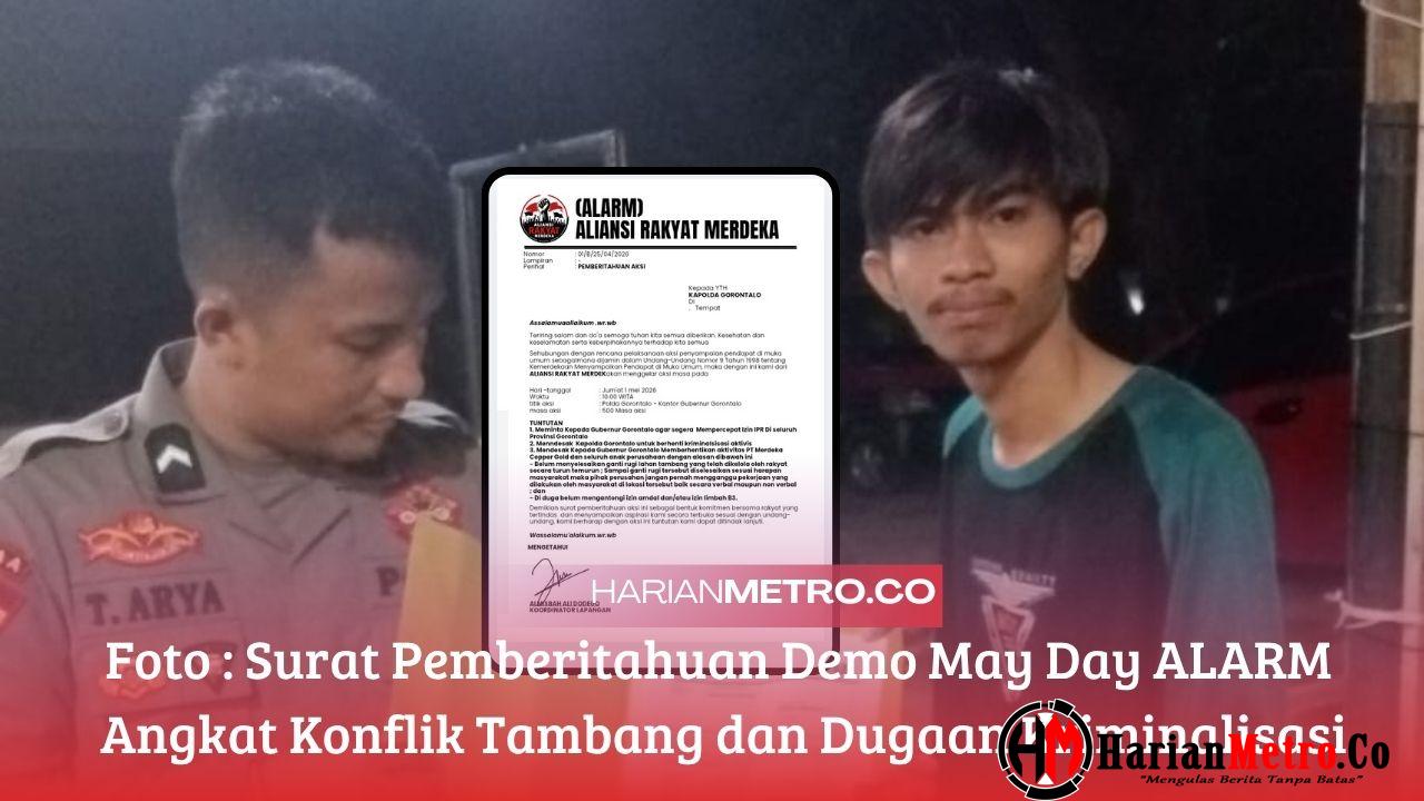 HarianMetro.co, GORONTALO – Aliansi Rakyat Merdeka (ALARM) resmi melayangkan surat pemberitahuan aksi unjuk rasa yang rencananya akan digelar pada Jumat, 1 Mei 2026, pukul 10.00 WITA.