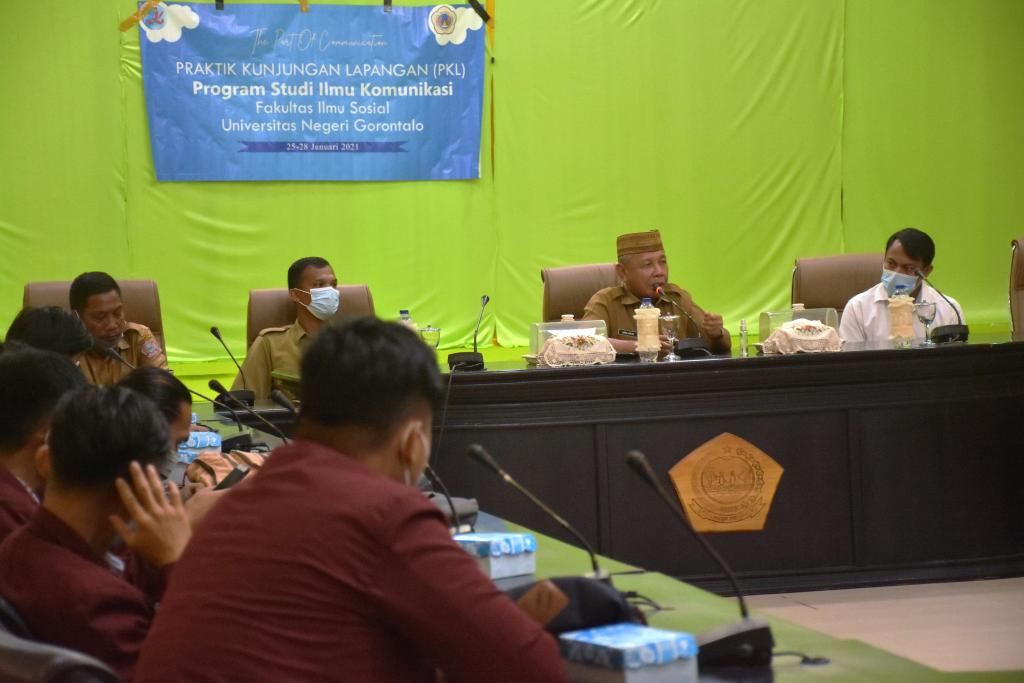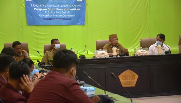 HarianMetro.co – POHUWATO, Wakil Bupati Pohuwato Amin Haras menerima mahasiswa Praktik Kunjungan Lapangan (PKL) Fakultas Ilmu Sosial Universitas Negeri Gorontalo di Aula Panua, Kecamatan Marisa, Senin (25/1/21).