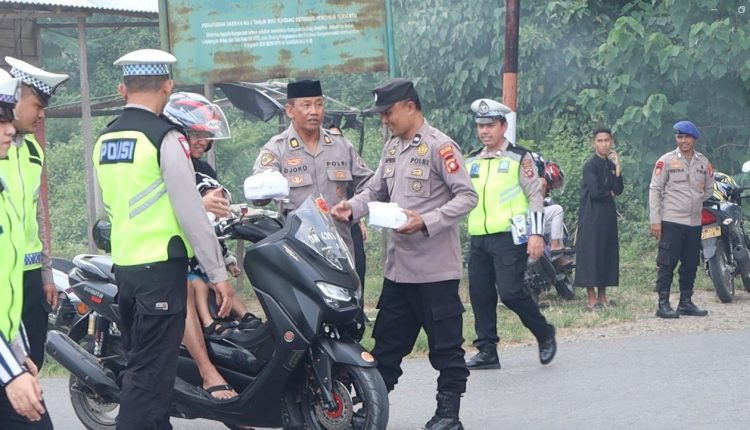 Berdasarkan pantauan awak media ini, Kompol Abadi bersama personil tampak membahikan sejumlah jajanan takjil untuk berbuka puasa, kepada sejumlah masyarakat pengendara saat melintasi area Simpang Empat Kantor Camat Marisa.