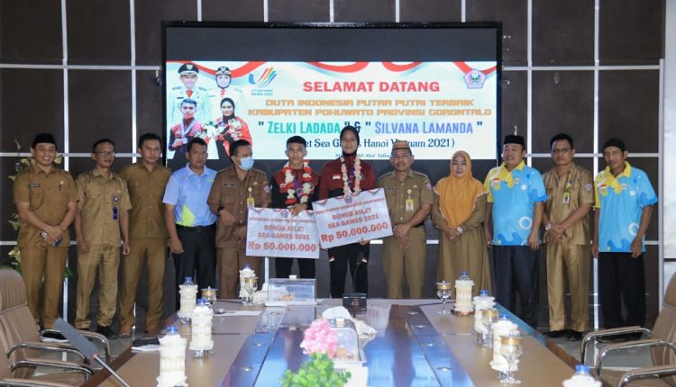 Dirinya juga mengungkapkan bahwa sebagai bentuk apresiasi dan rasa syukur yang besar, Pemerintah Kabupaten Pohuwato akan memberikan bonus 50 juta rupiah untuk Silvana Lamanda dan Jelki Ladada.