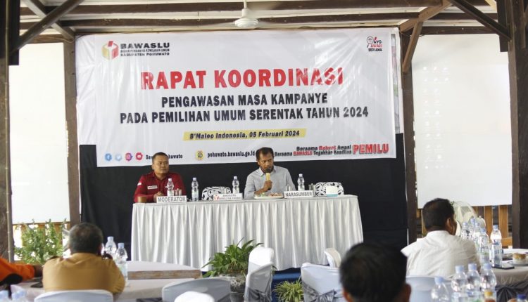 HarianMetro.co, POHUWATO – Badan Pengawas Pemilihan Umum (Bawaslu) Kabupaten Pohuwato, tengah menggelar rapat koordinasi untuk mengintensifkan pengawasan terhadap masa Kampanye Pemilihan Umum serentak tahun 2024, yang bertempat di B’Maleo Indonesia (Rumah Burung), Kabupaten Pohuwato, Senin (05/02/2024).