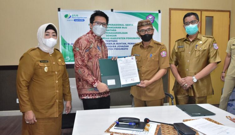 Bupati Saipul Mbuinga mengatakan kegiatan ini merupakan tahun kedua Pemda Pohuwato melakukan kerjasama dengan BPJS Ketenagakerjaan, yang dirangkaikan dengan penandatanganan MoU.