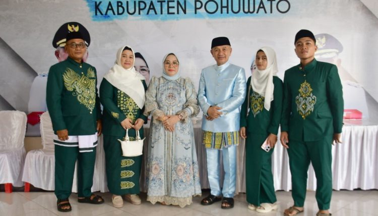Sejak pagi, warga dari berbagai kecamatan di Pohuwato berdatangan ke Rujab Bupati untuk bersalaman dan bertukar ucapan Idulfitri. Dalam kesempatan tersebut, Bupati Saipul dan istrinya menyampaikan ucapan “Minal Aidin Wal Faizin“, mohon maaf lahir dan batin kepada seluruh warga yang hadir.