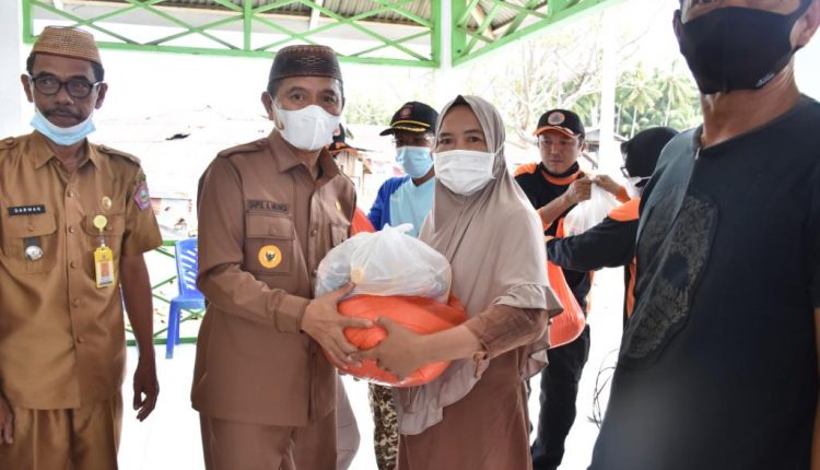Secara simbolis, Bupati Saipul A. Mbuinga menyerahkan paket sembako kepada 165 masyarakat pesisir pantai yang ada di Kelurahan Pentadu dan Desa Bumbulan Kecamatan Paguat, Senin (13/12/2021).
