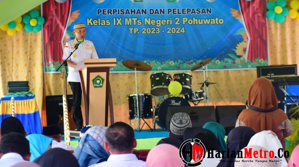 Hal ini ditegaskan oleh Bupati Pohuwato, Saipul A. Mbuinga, saat menghadiri acara perpisahan dan pelepasan siswa kelas IX MTs Negeri 2 Pohuwato Tahun Pelajaran 2023-2024, yang berlangsung di Halaman MTs Negeri 2, Rabu (22/5/2024).