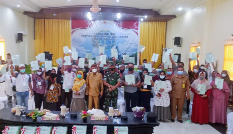 Penyerahan sertifikat secara simbolis itu berlangsung di Gedung Aula Panua, Selasa (14/12/2021) disaksikan langsung Kepala BPN, Pimpinan OPD dan Unsur Forkopimda Pohuwato.