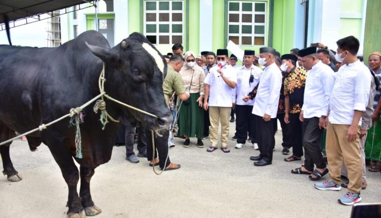 HarianMetro.co, POHUWATO – Bupati Pohuwato, Saipul A. Mbuinga, menerima bantuan berupa Sapi Kurban dari Presiden RI, Ir. H. Joko Widodo, yang diserahkan secara langsung oleh Penjabat Gubernur Gorontalo, Hamka Hendra Noer, di Halaman Masjid Agung Baiturrahim Pohuwato, pada Jum’at, (08/07/2022).