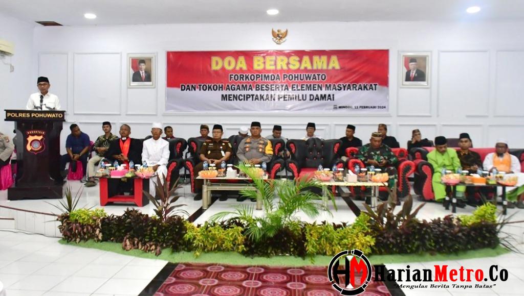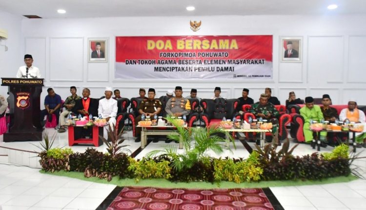 Di Aula Catur Prasetya Polres Pohuwato, kebersamaan terasa kuat saat Forkopimda, tokoh agama, dan warga Pohuwato berkumpul untuk mendoakan kelancaran pemilu dan meneguhkan komitmen akan perdamaian.