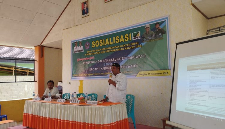 HarianMetro.co, POHUWATO – Pemerintah Kabupaten Pohuwato bersama DPC APRI Kabupaten Pohuwato melaksanakan kegiatan Sosialiasi Blok Wilayah Pertambangan Rakyak (WPR) dan Persyaratan Izin Pertambangan Rakyat (IPR) di Kecamatan Dengilo, Jumat (11/11/2022).