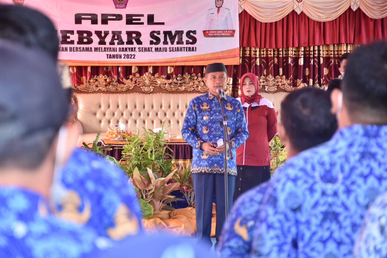 Seperti sebelumnya, untuk membangkitkan rasa semangat para aparat Desa dan Kecamatan pelaksanaan gebyar SMS tersebut diawali apel pagi oleh Bupati Pohuwato Saipul A. Mbuinga, Jum’at (20/05/2022).
