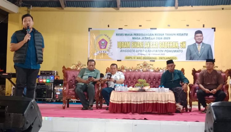 HarianMetro.co, POHUWATO – Anggota DPRD Kabupaten Pohuwato, Iqram Bhari Akbar Baderan, SH, dengan sapaan akrab Akbar itu, kembali menggelar Reses Masa Persidangan Kedua tahun Kesatu masa jabatan 2024-2029, Dapil V Kecamatan Duhiada’a – Patilanggio, yang berlangsung di lapangan Desa Padengo, Kecamatan Duhiadaa, pada Kamis (6/2/2025) dini hari.