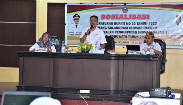 HarianMetro.co, POHUWATO – Sekretaris Daerah Kabupaten Pohuwato, Iskandar Datau, melakukan sosialisasi Peraturan Bupati Nomor 22 tahun 2022 tentang Kolaborasi Inovasi Daerah dan pembekalan penginputan inovasi Daerah.