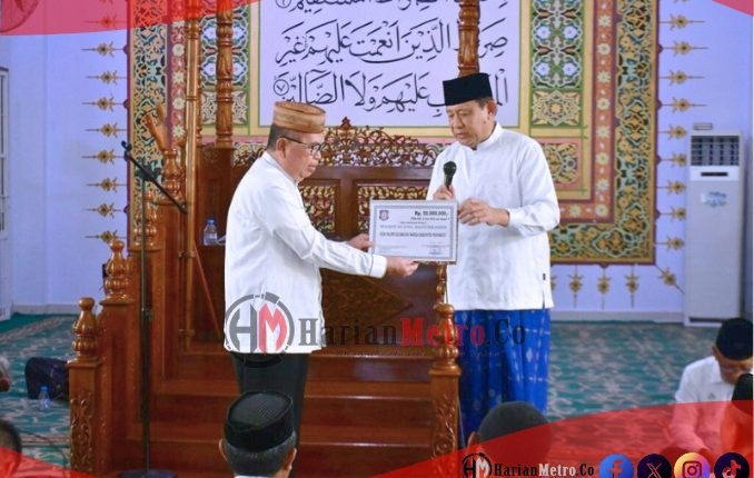 HarianMetro.co, POHUWATO – Bantuan sejumlah Rp.50 juta diserahkan oleh Gubernur Gorontalo, Gusnar Ismail, untuk pembangunan Mesjid Agung Baiturrahim Pohuwato usai melaksanakan salat Jumat berjemaah, Bantuan tersebut diterima oleh Ketua Takmirul Masjid Ramon Abdjul, pada Jumat, (1/8/2025).