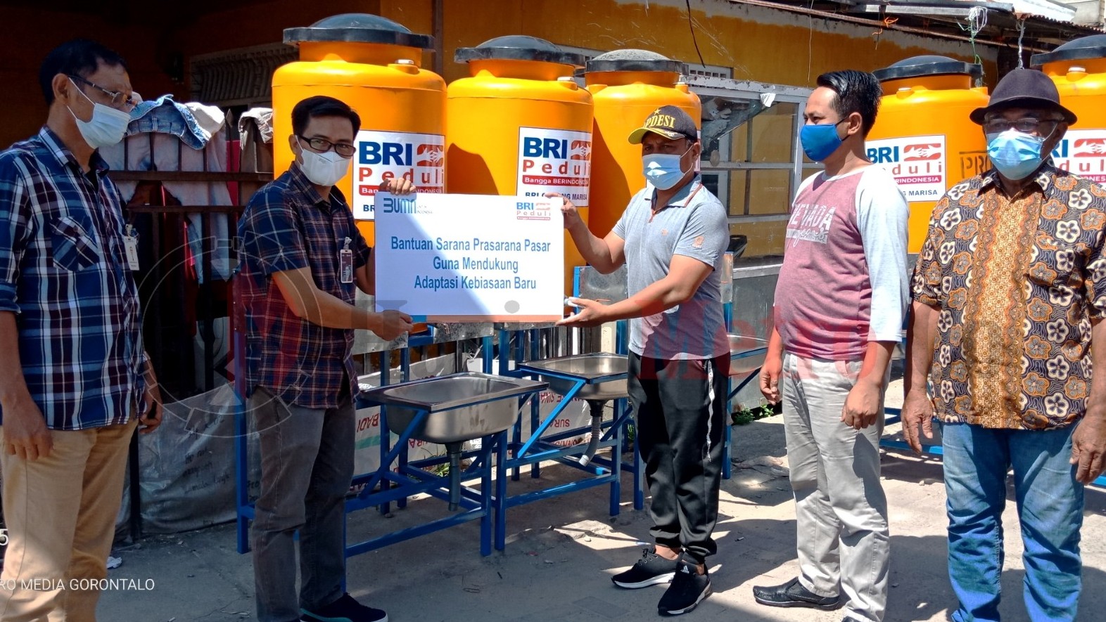 Dimana penyerahan sarana prasarana pasar tersebut, berupa wastafel portabel 5 Buah dan 1000 Masker yang diserahkan langsung oleh Pinca BRI Cabang Marisa kepala Desa Marisa Utara, didampingi Staf Dinas Perindagkop serta Kepala Pasar Tradisional Marisa.