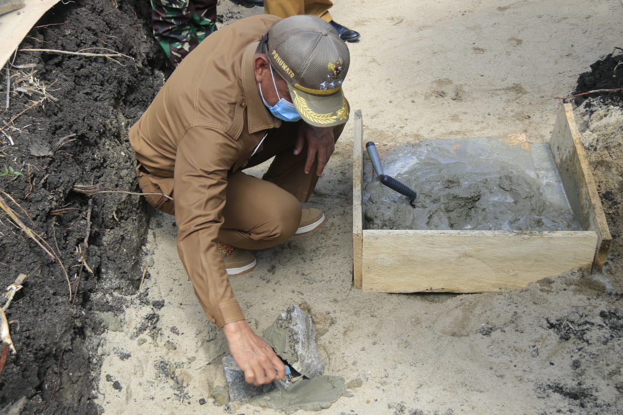 Terpisah: Bupati Syarif Mbuinga juga ikut meletakan batu pertama pembangunan sekolah calon bintara TNI Angkatan darat yang berada di lokasi Desa ilomata Kabupaten Gorontalo Provinsi Gorontalo.// GUSLAN