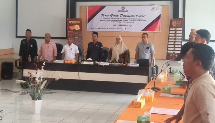 HarianMetro.co, POHUWATO – Menghadapi pesta demokrasi tahun 2024 mendatang, Komisi Pemilihan Umum (KPU) Kabupaten Pohuwato menggelar Fokus Group Discussion (FGD) dalam rangka membahas tentang Penyiapan rumusan kebijakan pemungutan dan penghitung suara dalam pemilu serentak tahun 2024 yang berlangsung di Aula KPU, Marisa, Rabu (28/6/2023).