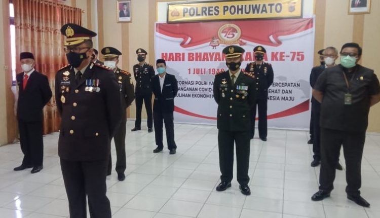 HarianMetro.co, POHUWATO – Kepolisian Resort (POLRES) Pohuwato menggelar upacara peringatan Hari Bhayangkara ke-75 tahun, di Aula Tribrata Polres Pohuwato, pada Kamis, 01 Juli 2021, (1/7).
