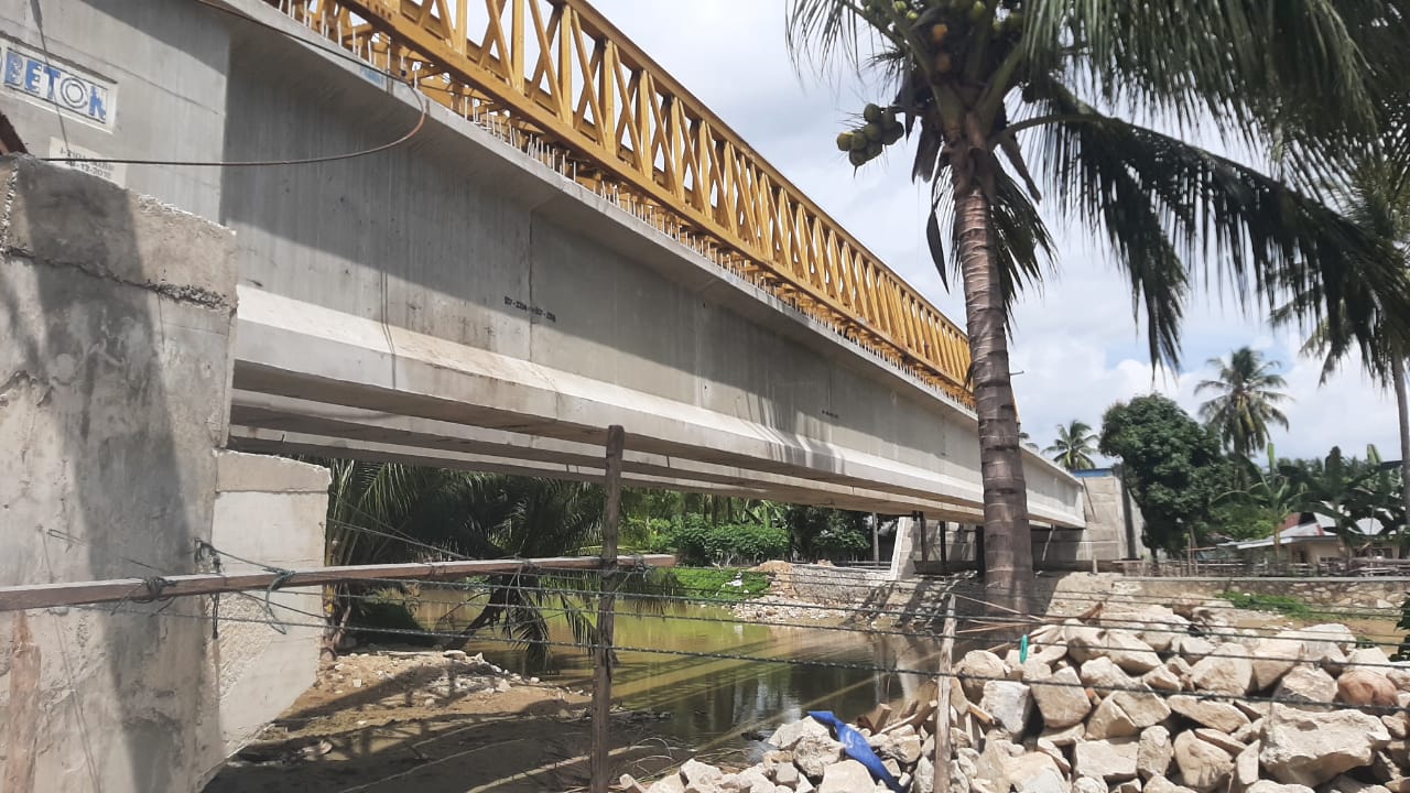 “Saat ini jembatan dengan nilai kontrak kurang lebih Rp.14 Milyar itu sementara dipacu pekerjaannya, mengingat jembatan itu adalah akses terdekat dari warga yang berada di Desa Bumbulan dan Kelurahan Pentadu yang ada di pesisir pantai,” ungkap Bupati Saipul.