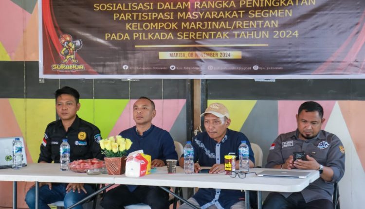 HarianMetro.co, POHUWATO – Komisi Pemilihan Umum (KPU) Kabupaten Pohuwato menggelar sosialisasi guna meningkatkan partisipasi pemilih dari kelompok marjinal dan rentan dalam Pilkada Serentak 2024, bertempat di Kedai Inspirasi Marisa, Jum’at (08/11/2024).