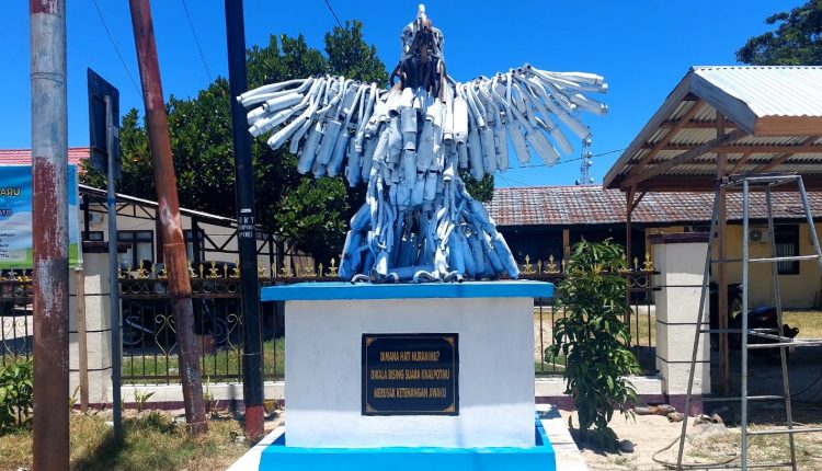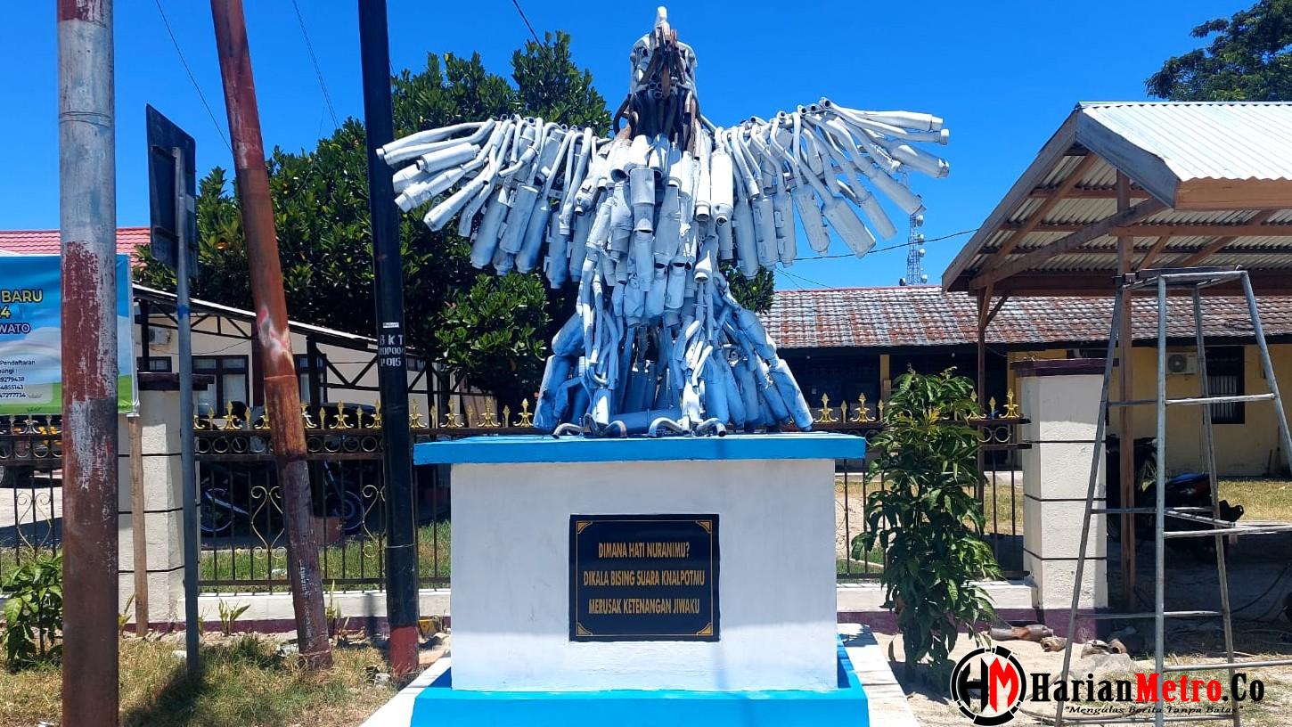 HarianMetro.co, POHUWATO – Patung replika burung Elang yang terbuat dari knalpot brong hasil sitaan operasi Otanaha tahun 2023, itu di letakkan di depan polsek Marisa, tepatnya disamping Pos Lalulintas. Jum’at (25/23).