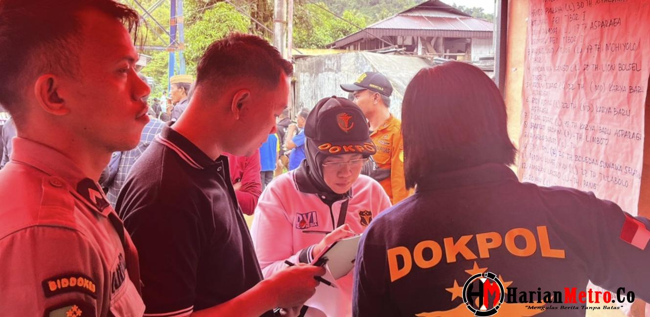 HarianMetro.co, POHUWATO – Polda Gorontalo melalui Tim Kedokteran dan Kesehatan (Dokkes), bergerak cepat untuk menangani korban longsor di Suwawa Timur, Kabupaten Bone Bolango.