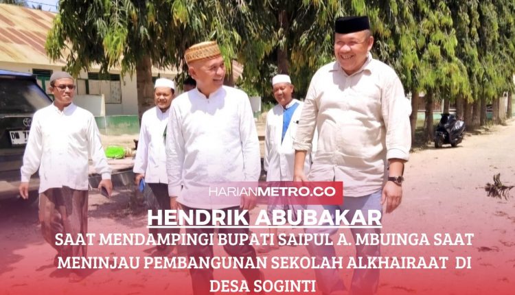 HatianMetro.co, POHUWATO – Bupati Saipul A. Mbuinga didampingi Hendrik Abubakat atau sapaan akrab (Hadoya), usai melaksanakan sholat jumat di Kecamatan Paguat, langsung meninjau pembangunan salah satu sekolah Alkhairaat di Desa Soginti.