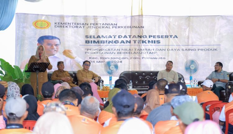 HarianMetro.co, POHUWATO – Bimtek Nilai Tambah dan Daya Saing Produk Perkebunan Berkelanjutan di Kabupaten Pohuwato oleh Direktur Pembenihan Perkebunan, Kementerian Pertanian, yang berlangsung di Halaman Kantor BPP Randangan, turut dihadiri Wakil Bupati Pohuwato, Suharsi Igirisa, Senin (4/3/2024).