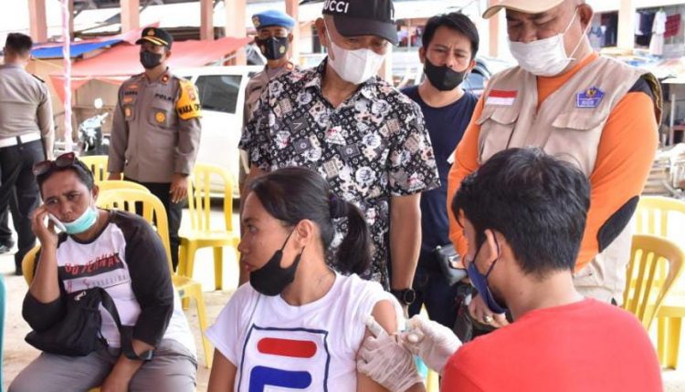 Buktinya, saat ini di pasar tradisional Marisa dilaksanakan pelayanan vaksinasi yang dipantau langsung Bupati Pohuwato, Saipul A. Mbuinga bersama Kapolres Pohuwato, Dandim 1313 Pohuwato, Sekretaris Gugus Tugas Covid-19, Ramon Abdjul dan Plt. Kadis Koperindag, Zulkifli Umar, Minggu (26/12/2021).