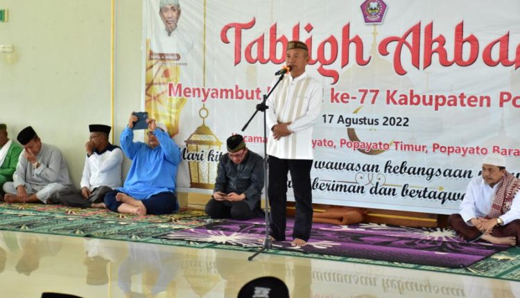 Tablig akbar berlangsung di masjid al-Munawwarah kecamatan Popayato, dihadiri Bupati Pohuwato, Saipul A. Mbuinga, Wakil Bupati, Suharsi Igirisa, anggota DPRD, Sekda Iskandar Datau, asisten, staf ahli bupati, pimpinan OPD dan camat popayato, popayato barat, dan popayato timur, Senin, (15/08/2022).