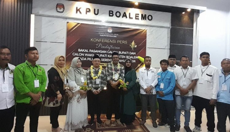 HarianMetro, BOALEMO – Pasangan Wahyudin Lihawa, S.T, M.K.K.K dan Abdillah Alhasni S.Hi. resmi mendaftarkan dirinya sebagai bakal calon bupati dan wakil bupati kabupaten Boalemo pada KPU Boalemo pada Pukul 21.00 Wita. Mereka menjadi pasangan terakhir yang mendaftarkan diri dalam pemilihan kepala daerah (Pilkada) yang akan segera berlangsung, Kamis malam (29/8/2024).