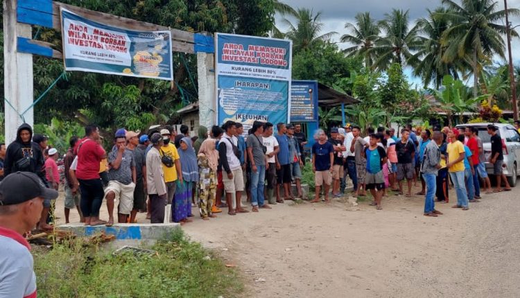 Alhasil, spanduk berukuran 4×6 meter dan bertuliskan “Anda Memasuki Wilayah Korban Investasi Bodong” terpampang jelas di Persimpangan Desa Popaya, Kecamatan Dengilo Kabupaten Pohuwato.