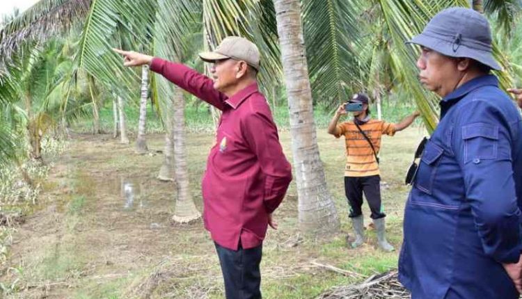 Bupati Pohuwato, Saipul A. Mbuinga meninjau sejumlah titik banjir bersama Kepala Dinas Pertanian Pohuwato, Kamri Alwi, Sekretaris Dinas PU, Sadirun dan Camat Taluditi, Riko Ali Idrus, pada Kamis, (14/07/2022)
