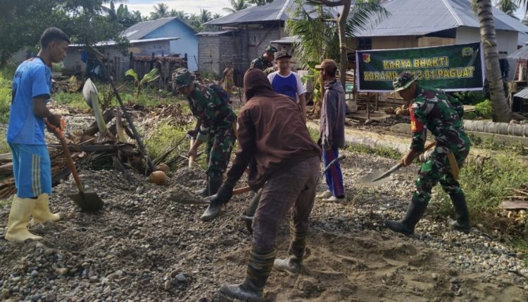 “Dalam kegiatan ini, kolaborasi antara TNI, pemerintah Desa dan Kecamatan serta masyarakat sangatlah penting. Kegiatan ini sangatlah berguna untuk membantu masyarakat setempat dalam melaksanakan aktifitas sehari hari dan juga dapat meningkatkan kenyamanan bersama,” Ujar Danramil 1313-01/Paguat.