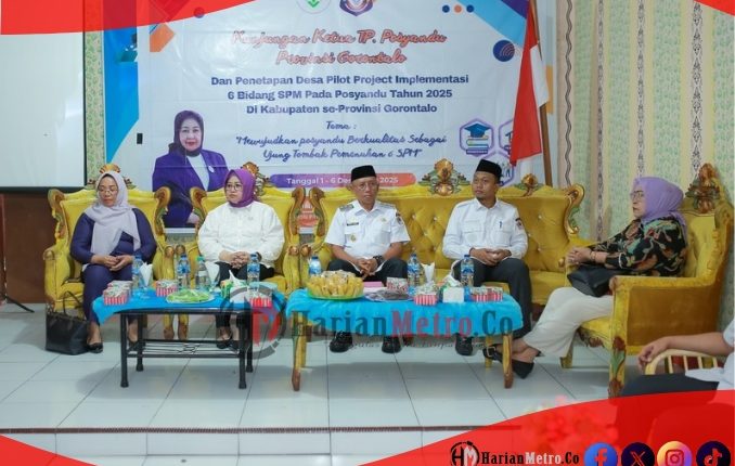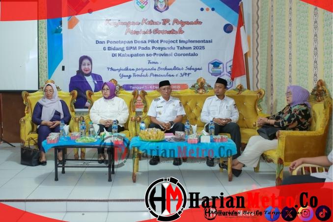 HarianMetro.co, POHUWATO — Desa Marisa Utara, Kecamatan Marisa, resmi menjadi pilot project implementasi enam bidang Standar Pelayanan Minimal (SPM) Posyandu di Kabupaten Pohuwato. Penetapan tersebut ditandai dengan kunjungan Ketua TP Posyandu Provinsi Gorontalo, Ny. Ir. Hj. Nani Ismail Mokodongan, MM, pada Rabu (03/12/2025).