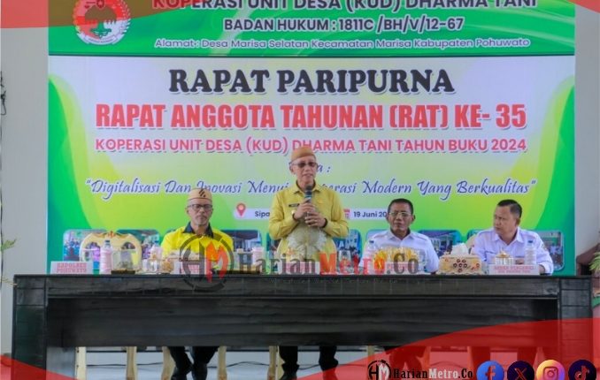 HarianMetro.co, POHUWATO – Wakil Bupati Pohuwato, Iwan S. Adam, secara resmi membuka Rapat Anggota Tahunan (RAT) ke-35 Koperasi Unit Desa (KUD) Dharma Tani Tahun Buku 2024, yang bertempat di Kantor KUD Dharma Tani, Kecamatan Duhiadaa, Kamis (19/6/2025) kemarin.