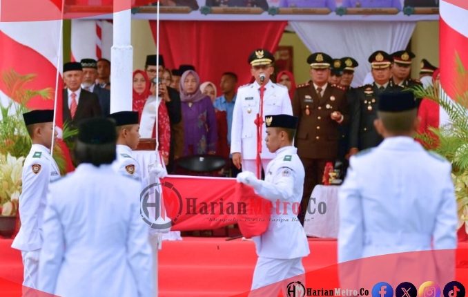 HarianMetro.co, POHUWATO – Upacara penurunan bendera Merah Putih dalam rangka peringatan Hari Ulang Tahun ke-80 Republik Indonesia tingkat Kabupaten Pohuwato berlangsung khidmat pada Minggu sore, 17 Agustus 2025, di halaman Kantor Bupati Pohuwato.